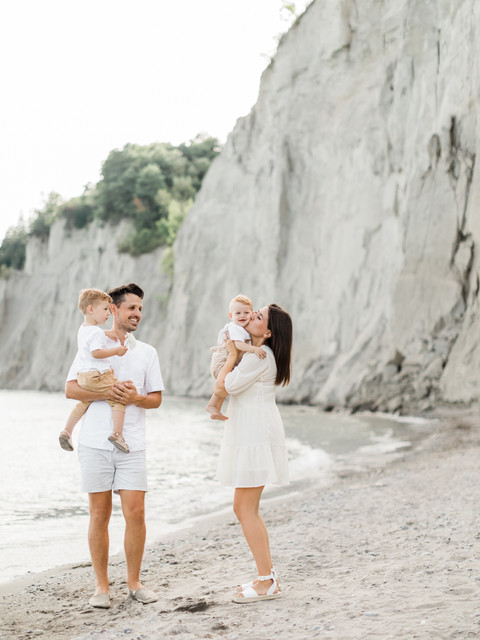 We have been wanting to take family photos for quite some time, but you know.. life happens! I've always loved seeing Elza's work whether for a brand, mini and/or family sessions. I love how bright, airy and timeless they are! I thought Scarborough Bluffs would be the perfect location that offered some water, rock, and greenery. It really reminded me of California's coastline and thought it would give the perfect backdrop for some framed photos around our home! We booked a shoot day with Elza and crossed our fingers that it would work out since many places were still closed due to Covid. Luckily it all worked out, aside from the fact that I had to give all the boys haircuts myself haha!