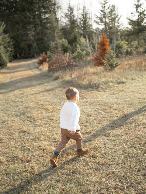 These photos were taken at the Drysdale Tree Farm up in Egbert, ON around 2:30PM which is right after my boys nap and when there was some beautiful sunshine peaking through the trees.